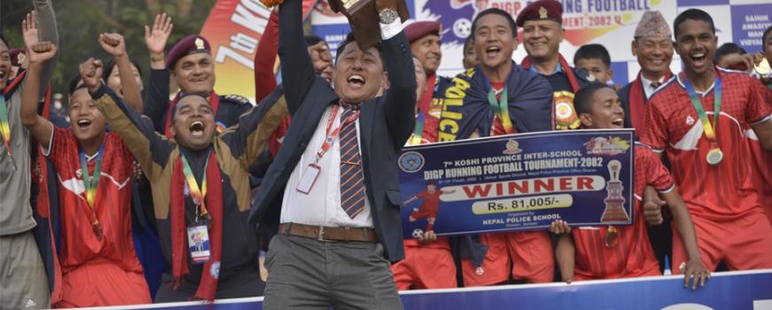धरान : कोशी प्रदेशस्तरीय अन्तर विद्यालय डिआइजी रनिङ कप फुटबल प्रतियोगिताको सातौँ संस्करण फुटबल प्रतियोगिताको उपाधि आयोजक नेपाल पुलिस स्