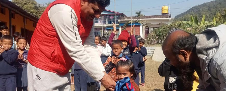 धरान : धरान-६ स्थित रणदेवी आधारभूत विद्यालयका विद्यार्थीलाई वडाध्यक्ष भूपेन्द्र भट्टराईले न्यानो कपडा वितरण गरेका छन्। मंगलबार आयोजित क
