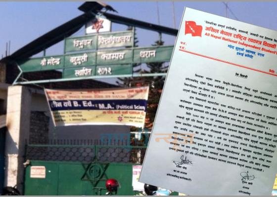 धरान : अनलाइन कक्षाको शुल्क लिनेबारे महेन्द्र बहुमुखी क्याम्पस धरानले सूचना जारी गरेपछि अनेरास्ववियुले आपत्ति जनाएको छ । कोरोना महामार