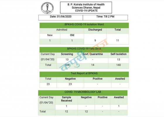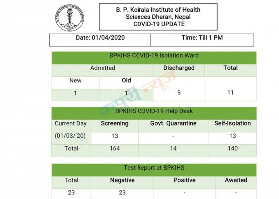 धरान : बीपी कोईराला स्वास्थ्य विज्ञान प्रतिष्ठानमा स्थापना गरिएको कोरोना परिक्षण गर्ने ल्याबबाट कारोना भाइरस परिक्षणको रिपोर्ट आउन थाले
