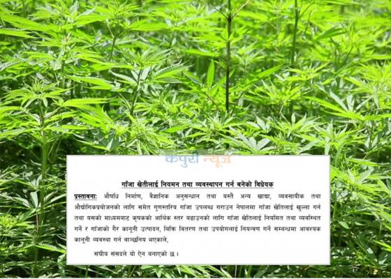 इटहरी : निश्चित मापदण्डको आधारमा गाँजा खेतीलाई कानुनी आधार दिने गरिको कानुन प्रतिनिधिसभामा पेस भएको छ । गाँजा खेतीलाई कानुनी मान्यता दि