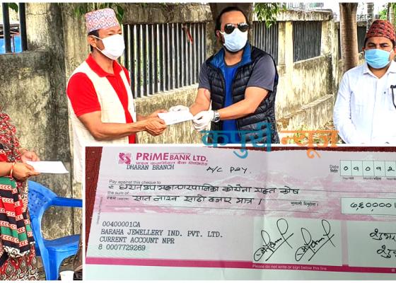 धरान : बराह ग्रुपले धरान उपमहानगर र नेपाल सरकारको कोरोना रोग सङ्क्रमण रोकथाम नियन्त्रण कोषमा जम्मा उन्नाइस लाख रुपैयाँ सहयोग गरेको छ ।