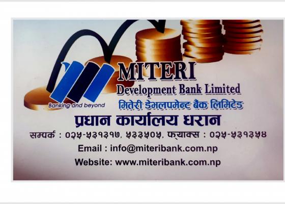 धरान : मितेरी डेभलपमेन्ट बैंकले प्रतिकुल परिस्थीतीलाई मध्यनजर गर्दै सेवाग्राहीहरुको सुविधाकालागी ११ बजेदेखि २ बजेसम्म गर्ने बैंकिङ सेवा