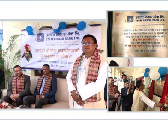 ईटहरी : ज्योति विकास बैक लिमिटेडको, ईटहरी क्षेत्रिय कार्यालय उद्घाटन भएको छ । शुक्रबार ईटहरीको ५ नं. वडामा क्षेत्रिय कार्यालयको स्थापना