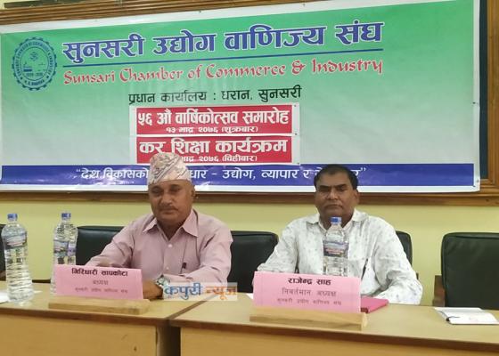 धरान: सुनसरी उद्योग वाणिज्य संघ, धरानले ५६ औं वार्षिकोत्सव मनाउने क्रममा आज कर शिक्षा कार्यक्रम आयोजना गरेको छ । संघ अन्तर्गत धरानका व