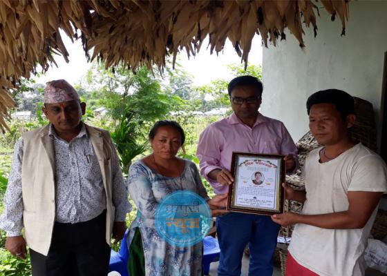 इनरुवा: सुनसरीको हरिनगर गाउँपालिका वडा नम्बर २ भुटाहामा केही दिन अघि बर्षासँगै आएको बाढीमा डुबेर मृत्यु भएका परिवारलाई हरिनगर गाउँपालिक