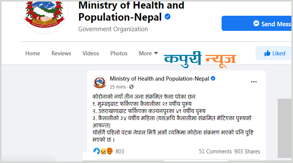 इटहरी : नेपालका लागि कोरोना भाइरसका सातौं संक्रमित भेटिएका छन् । भारत बाट आएका व्यक्तिलाई पोखरामा गरिएको स्वास्थ्य परीक्षणमा कोरोना भेट