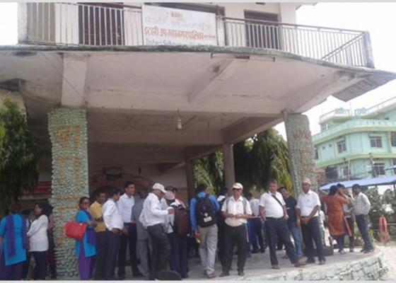 धरान(डेस्क) : विहीबार इटहरी उपमहानगरपालिकाका कार्यालय परिसर बाहिर कर्मचारीहरुको बाक्लो भिड लागेको छ । इटहरी उपमहानगरपालिका भरिकै कर्मच