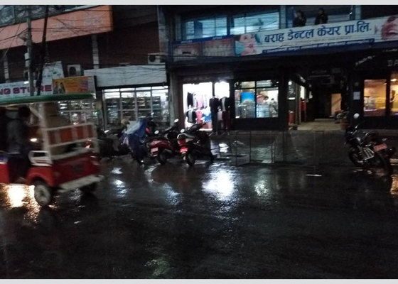 धरान : अचानक मौसम बिग्रीएर धरानमा दिउसैं रात परेको जस्तो भएको छ । अहिले धरानमा असीना सहितको पानी मुसलधारे परिरहेको छ भने र