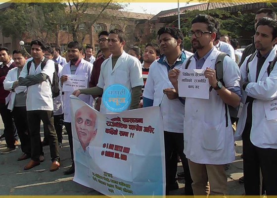 धरान: राष्ट्रिय चिकित्सा विधेयक पूर्वसहमति अनुसार हुबहु पारित गर्नुपर्ने माग राख्दै १६ औं पटक अनसनमा रहेका डा.गोविन्द केसीको समर्थनमा ध