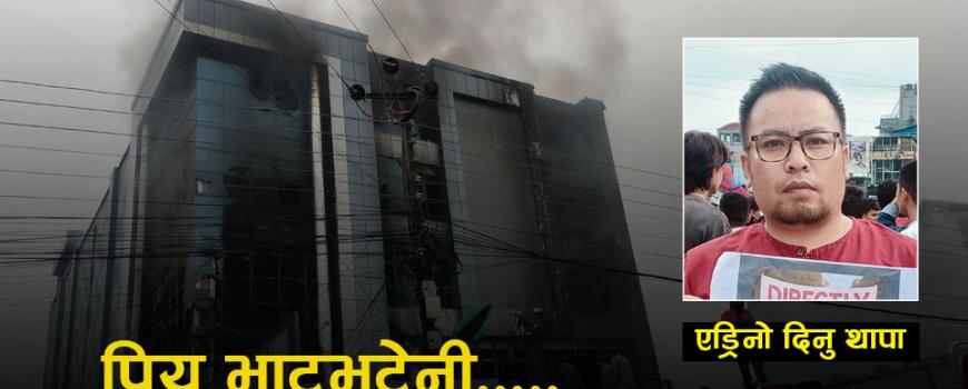 एड्रिनो दिनु थापाप्रिय भाटभटेनी........जनमानसको भवसागर सँगैअखण्ड परिवर्तनको नारा सँगैदेशमा अराजकताले जन्म लिएपछिशत्रु जन्मिएछ त्यही भवस
