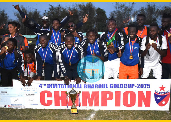 धरान: दाउफिन्स एफसि क्यामरुनले आज सम्पन्न चौथो अन्तरराष्टिय आमन्त्रण भरौल गोल्डकप जित्दै जारी सिजनमा उपाधि यात्रा टुंग्याएको छ । भरौल