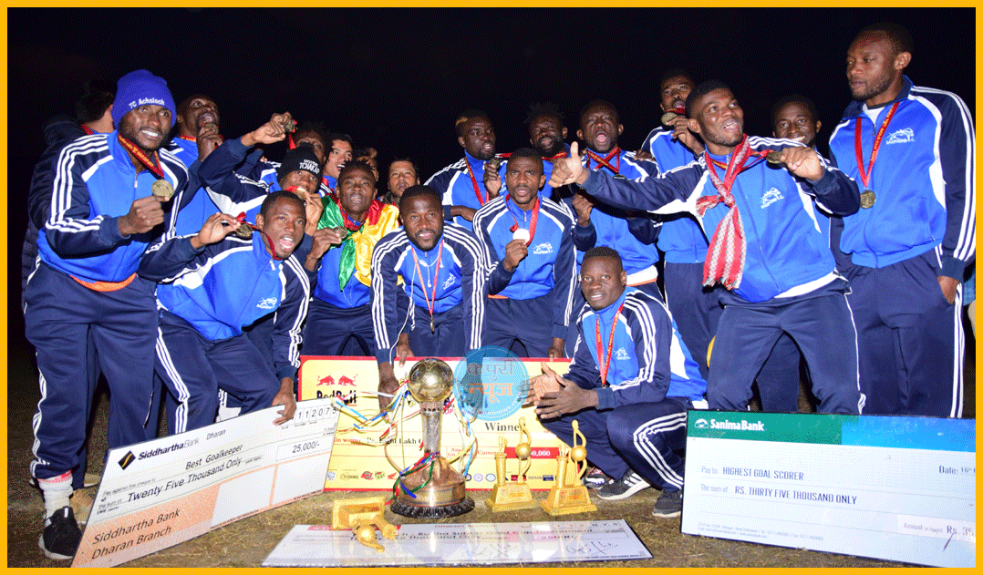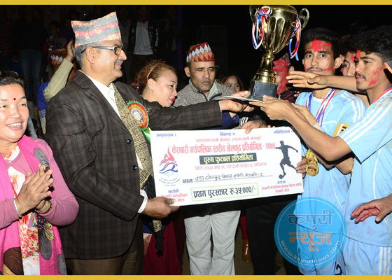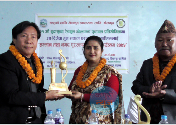 धरान : २१ औं बुढासुब्बा रेडबुल गोल्डकपमा उपविजेता बनेको आयोजक धरान फुटबल क्लवका खेलाडीहरुलाई ३ लाख ५० हजार रुपैया प्रोत्साहन पुरस्कार प