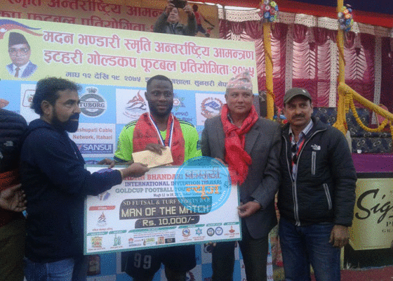 इटहरी :नेपाल पुलिस क्लबको चुनौती १–० ले पन्छाउदै मनाङ मस्याङ्दी क्लब इटहरीमा जारी दोस्रो मदन भण्डारी स्मृति इटहरी गोल्डकपको फाइनल