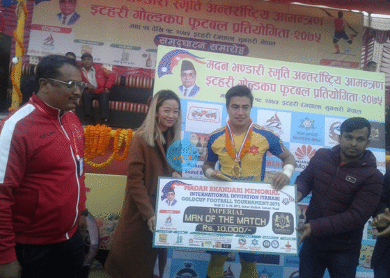 इटहरी : दोस्रो मदन भण्डारी स्मृति अन्तराष्ट्रिय आमन्त्रण इटहरी गोल्डकपमा मंगलबार सिएफसि, भुटानलाई २–० गोलअन्तरले हराउदै विभागिय ट