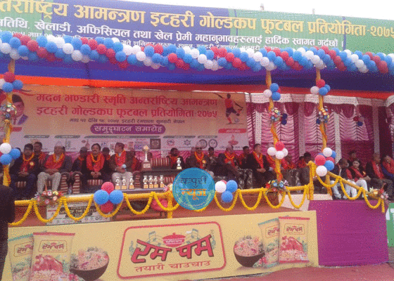 इटहरी:दोस्रो मदन भण्डारी स्मृति अन्तराष्ट्रिय आमन्त्रण इटहरी गोल्डकप शनिबारबाट इटहरी रंगशालामा सुरु भएको छ । प्रतियोगिताको उद्घाटन खेल