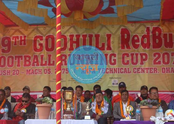 धरानः धरानमा जारी १९ औं अन्तर वडास्तरीय गोधुली फुटबल कप अन्तर्गत आइतबारको खेलमा धरानको वडा नं १३ सेमीफाइनलमा प्रवेश गरको छ । धरान १७ स