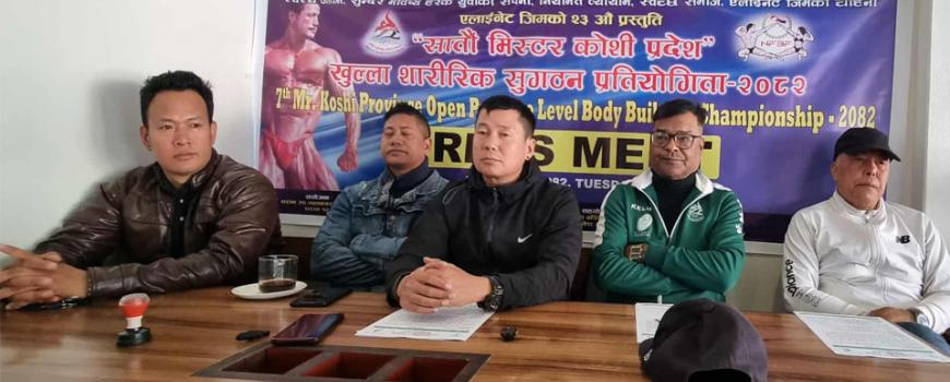 धरान : सातौं मिस्टर कोशी प्रदेश खुला शारीरिक सुगठन प्रतियोगिता आउँदो चैत २७ देखि हुने भएको छ ।आयोजक एलाइनेट जिमद्वारा मङ्गलवार आयोजित प