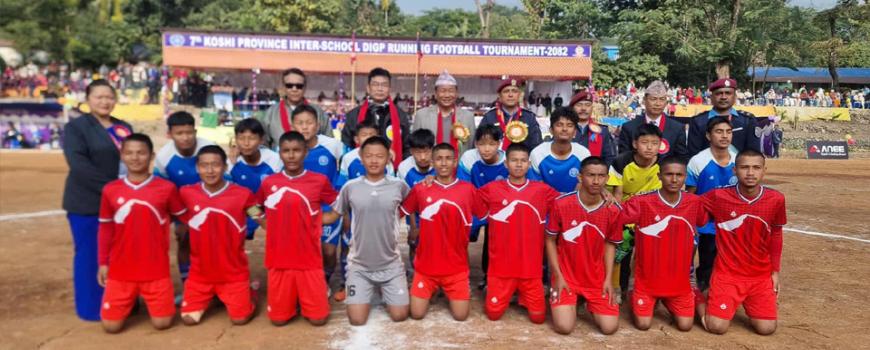 धरान: कोशी प्रदेशस्तरीय अन्तर विद्यालय डिआइजी रनिङ कप फुटबल प्रतियोगिताको सातौँ संस्करणको उद्धाटन खेलमा नेपाल पुलिस स्कुल रेड विजयी भएक
