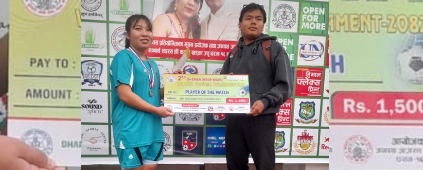 धरान : धरान नगर अन्तर वडा महिला नकआउट रनिङकप फुटबल प्रतियोगिताको को उपाधि धरान २०ले चुमेको छ ।धरान रङ्गशालामा शनिवार भएको फाइनल ख