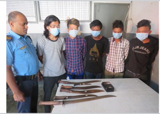 धरान : धरानमा हातहतियार सहित पाँच युवा पक्राउ परेका छन् । धारिलो हतियार तरवार, खुकुरी, चक्कु बोकेर हिडिरहेका ५ जनालाई पक्राउ गरिएको इला