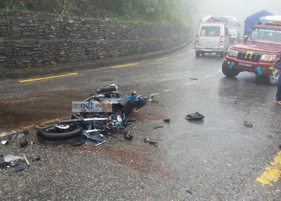 धरान : इटहरीबाट धरान आउदै गरेको स्कुटिलाई सोही दिशाबाट आइरहेको बसले ठक्कर दिदा कोशी राजमार्गको धरान इटहरी सडकखण्डको चारकोशे जङ्गल