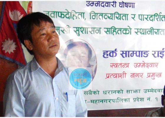 धरान: आगामी मंसिर १४ गते हुन लागेको उप–निर्वाचनमा धरानको मेयर पदको लागि हर्क सम्पाङ राईले उम्मद्वारी घोषणा गरेका छन् । मेयर तारा