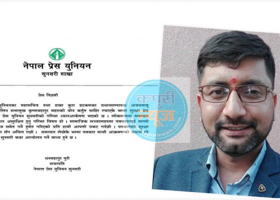 इटहरी: निवर्तमान सभामुख कृष्णबहादुर महराको समाचार लेख्ने पत्रकार अजयबाबु सिवाकोटी असुरक्षित भएको भन्दै प्रेस युनियन सुनसरीले आपत्ती जना