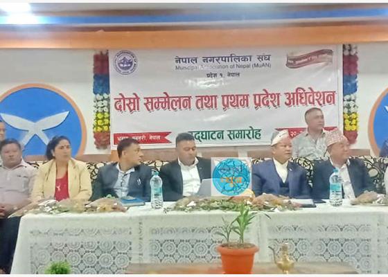 धरान: विभिन्न ११ बुँदे धरान घोषणापत्र जारी गर्दै नेपाल नगरपालिका संघ १ नम्बर प्रदेशको दोस्रो सम्मेलन तथा प्रथम प्रदेश महाधिवेश शनिबार ध