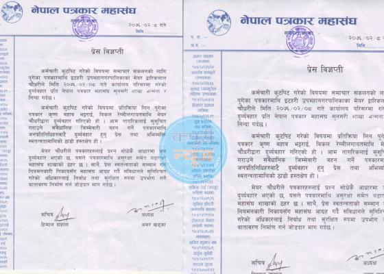 इटहरी : इटहरी उपमहानगरपालिकाका मेयर द्वारीकलाल चौधरीले पत्रकारलाई पनि दुव्र्यवहार गरेका छन् । समाचार संकलनको क्रममा प्रतिक्रिया लिन पु