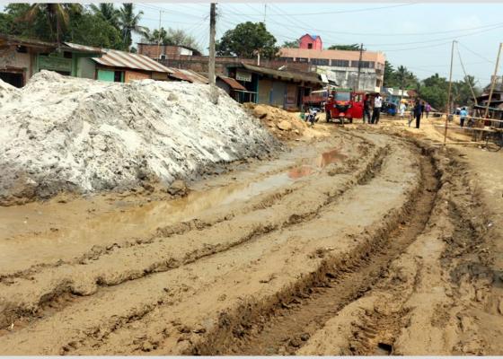 भुटाहा : सुनसरीको हरिनगर गाउँपालिकाको भुटाहामा सडक निमार्णको जिम्मा पएको ठेकेदारको गैरजिम्मेवारीका कारण भुटाहा बजार अबरुद्ध भएको