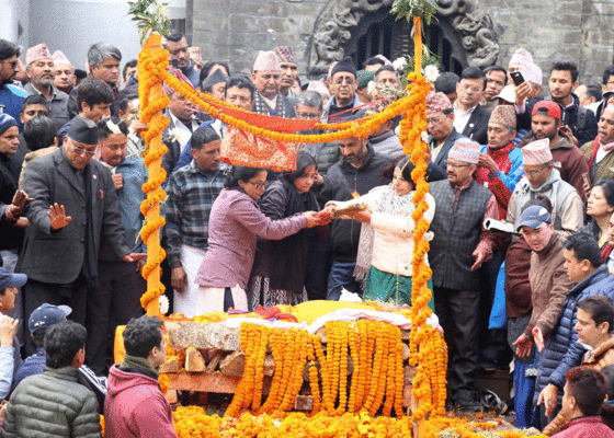काठमाडौँ: नेपाल कम्युनिष्ट पार्टी -नेकपा_का दिवङ्गत नेता तथा पूर्वउपप्रधानमन्त्री एवं अर्थमन्त्री भरतमोहन अधिकारीको आज राजकीय सम्मानका