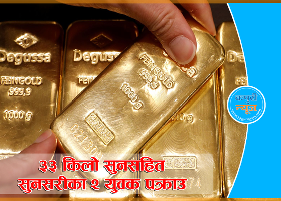 काठमाण्डौँ : दुई नेपाली ३३ किलो सुनसहित भारतबाट पक्राउ परेका छन् । पक्राउ पर्नेमा सुनसरीका राकेशप्रसाद र हेमकुमार शर्मा रहेको नेपाल प्र