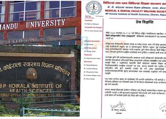 धरान : झापाको बिएण्डसी मेडिकल कलेजलाई सम्बन्धन दिलाउन शिक्षा मन्त्रालयको क्षेत्राधिकार बाहिर गएर बीपी कोइराला स्वास्थ्य विज्ञान प्रतिष्